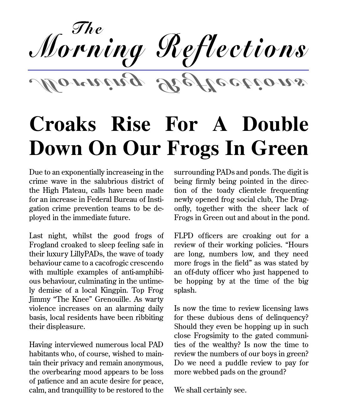 ...The Morning Reflections, a broadsheet snooty paper...